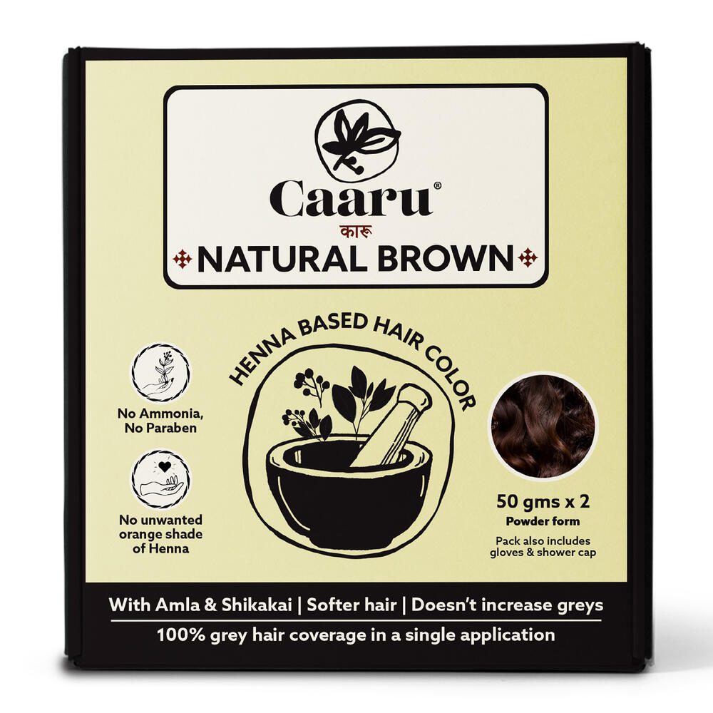 Get gorgeous natural brown hair color with Caaru innovative Henna-Based Hair Color. Shop Caaru today and experience the difference!